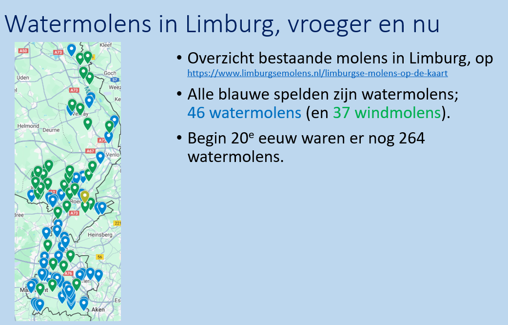 Vrijdag 6 februari jl. vond de Wintermiddag van het Netwerk Historisch Cultuurlandschap plaats bij de Rijksdienst voor het Cultureel Erfgoed te Amersfoort. Watermolenlandschappen vormden het thema van deze drukbezochte dag. Een aantal auteurs van de decemberspecial van het Tijdschrift voor Historische Geografie (https://www.aup.nl/en/book/9789048575947/watermolenlandschappen) gaven verdiepende lezingen over het belang van deze cultuurlandschappen en de rol van watermolens daarin. Harm Smeenge beschreef zijn onderzoek naar de opbouw en dynamiek van het watermolenlandschap in het Mosbeekdal en de sturende rol die onder andere watermolen Frans en watermolen Bels hierin gespeeld hebben. Louis Lansink toonde hoe waterschap Rijn en IJssel het gebied van de Baakse Beek in Gelderland herinricht, gebruik makend van historische gegevens over dit watermolenlandschap. Willy Moors beschreef de historie van de Itterbeek in Belgisch en Nederlands Limburg, waar ooit 15 watermolens het landschap vormden. Ook de rol van watermolenaars in het verleden, en de mogelijkheden en onmogelijkheden voor watermolenaars nu, werden hierin belicht. Hans de Mars complementeerde de middag met een onderbouwing van de wijze waarop watermolens eeuwenlang een rol hebben gespeeld in hydrologie en landschapsvorming. Door goed en doordacht gebruik te maken van deze functie van watermolens, bieden deze cultuurhistorische bakens in het landschap bovendien mogelijkheden om problemen door klimaatverandering op te lossen.