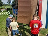 De zes mio’s in de leeftijd van 13 tot 17 jaar hebben de molen opgezeild en laten draaien. Na de lunch mochten ze proeven aan het splitsen van touw en hebben ze de Sint Jan van nieuwe hoektouwen voorzien. Als slotstuk hebben ze gezamenlijk een geocache verstopt in de buurt.